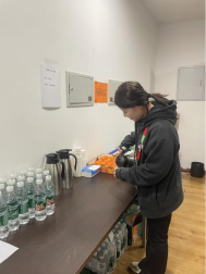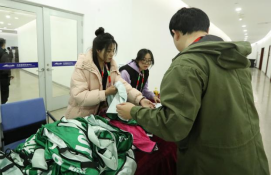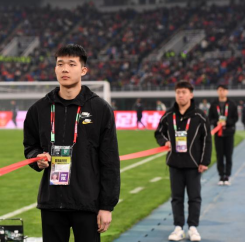 体职院的30名志愿者按照岗位分成两组,一组在赛场内拉隔离带、维护赛场采访秩序🤥👦🏽,一组在新闻发布厅、媒体看台区、混合采访区、餐饮区负责首发名单的接收与传递、储物柜管理、设备检查🤵🏽、秩序引导⤵️、收发物资、机动协调等工作。