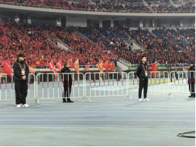 赛场内的学生志愿者,按照组委会工作人员要求,快速到位,站立昂首挺胸,精神十足🥘,隔离带拉得笔直🐎,有效协助维护了赛场内的采访秩序👨🏭。