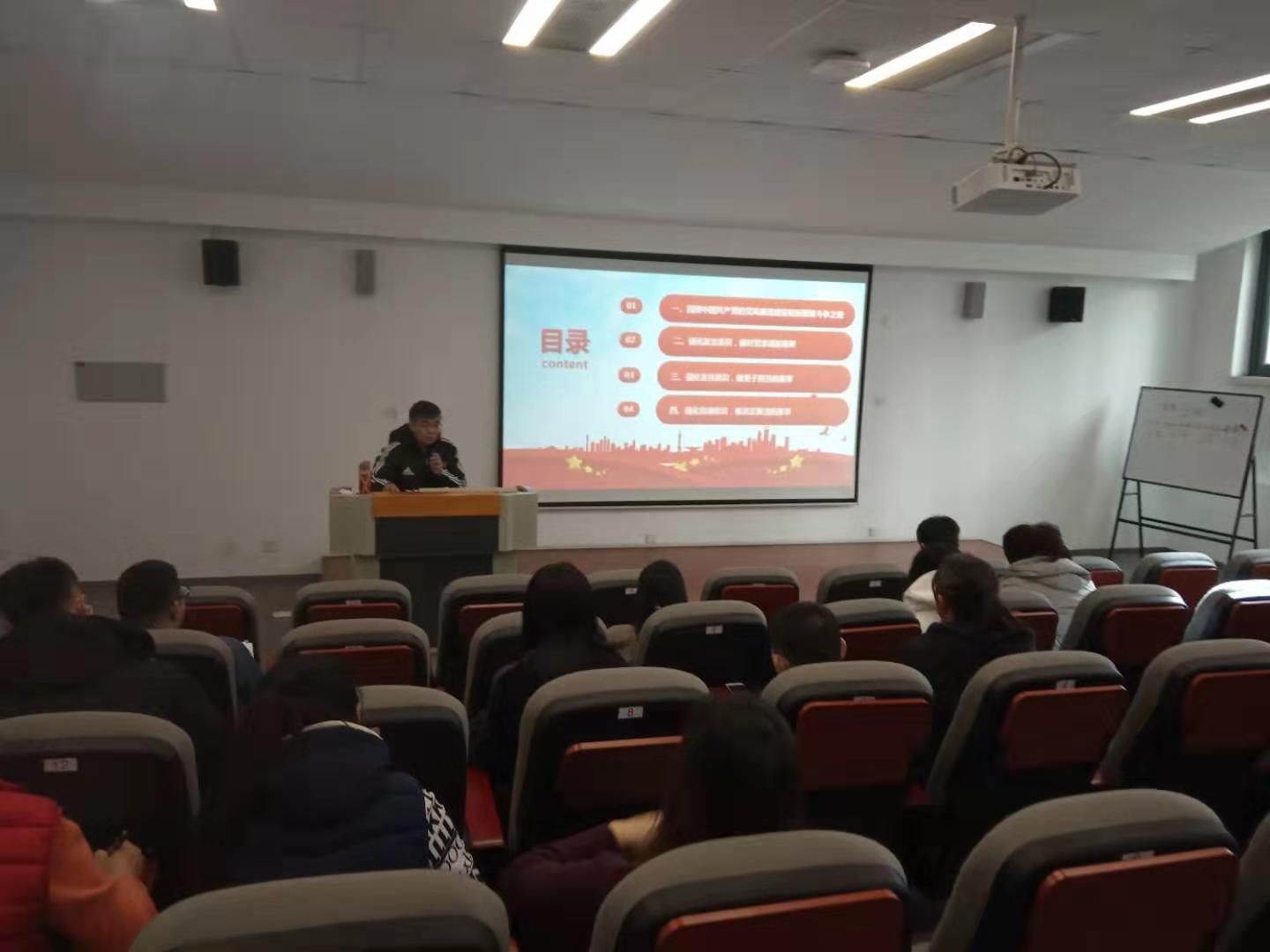 12月11日下午👩🦽,在学院第一阶梯教室✊🏽,由院党委书记王伟给学院中层干部及党员讲授了以“坚守初心 筑牢廉政的思想道德防线”为主题的廉政党课。