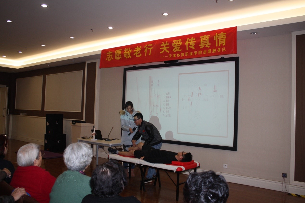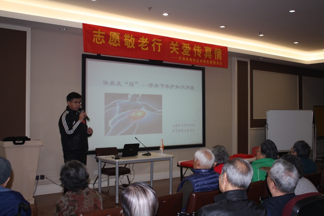 123日上午,按照天津市第十一届社区教育展示周👐🏽,暨2017年天津市全民终身学习活动周的工作要求,学院领导高度重视,亲自带队并部署工作👫,经办公室组织协调,体育保健与康复系的师生到位于静海区的康宁津园老年公寓举办《休养生“膝”——老年人膝关节养护知识》主题讲座👦🏼,为老年人讲解关于膝关节养护知识,带领他们实践操作并解答健康难题。
