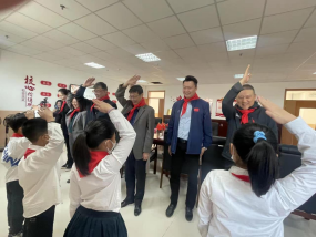 4月25日上午,学院党委副书记✮、院长王伟👩🏿🔬、院党委委员、副院长沈茹劼及相关工作负责同志一行六人来到天津复兴小学,复兴小学准备了一场别开生面的欢迎仪式,为与会来宾佩戴红领巾,行少先队队礼。
