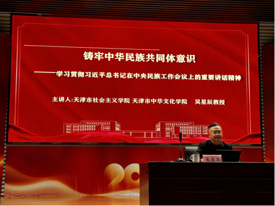 为深入学习贯彻党的二十届三中全会精神,深刻领会习近平总书记关于加强和改进民族工作的重要思想,贯彻落实习近平总书记关于铸牢中华民族共同体意识的重要论述,引导广大师生牢固树立中华民族共同体理念,促进各民族交往交流交融🫄🏽,建设中华民族共有精神家园📪。11月13日下午,我院邀请天津市社会主义学院 天津市中华文化学院吴星辰教授作铸牢中华民族共同体意识专题培训。学院领导班子、教职工代表、少数民族学生及2024级学生代表参加专题培训。