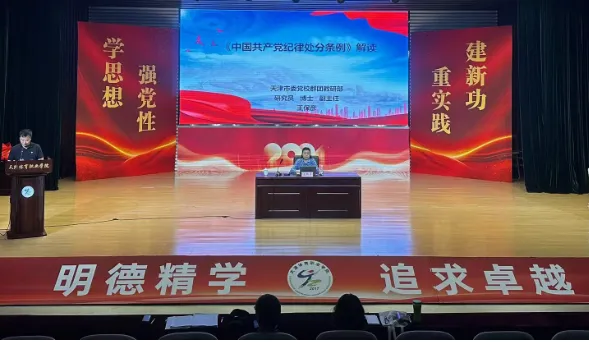 为推进落实中央关于在全党开展党纪学习教育的重大部署,教育引导学院广大党员干部深入学习贯彻《中国共产党纪律处分条例》,始终做到学纪🛍、知纪、明纪、守纪,切实把党纪学习教育成效转化为学院高质量发展成果,结合学院党纪学习教育大讲堂集中学习,体职院邀请市委党校王保彦教授7月11日莅临学院🪲,对《条例》进行权威宣传解读和政策辅导。学院党政主要负责同志、全体党员干部参加了此次培训⛹🏽♀️,党委委员♦︎、副院长潘政彬主持会议🌧。