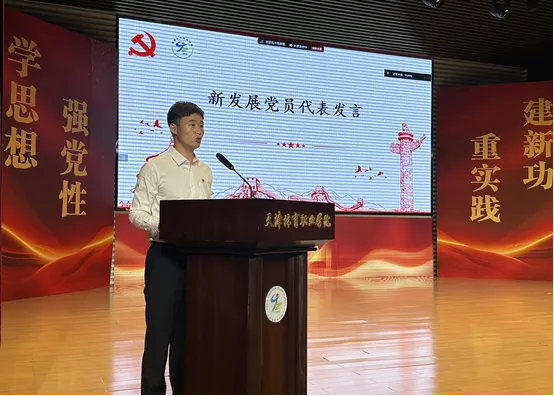 新发展党员代表在发言中表达对党组织培养的感激之情以及加入党组织的光荣感和自豪感。表示在今后的学习生活中要不断加强理论学习,提高自身政治素质;要以身作则,时刻发挥表率作用😝;树立终身学习的观念🚶♀️➡️,努力掌握科学文化知识。