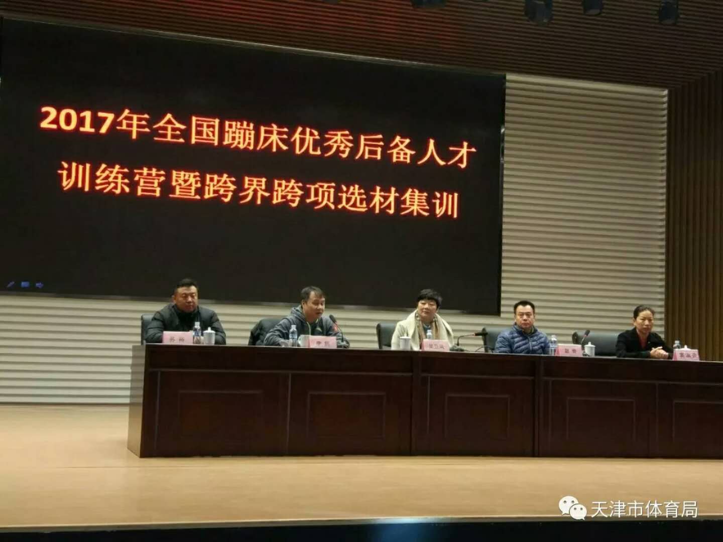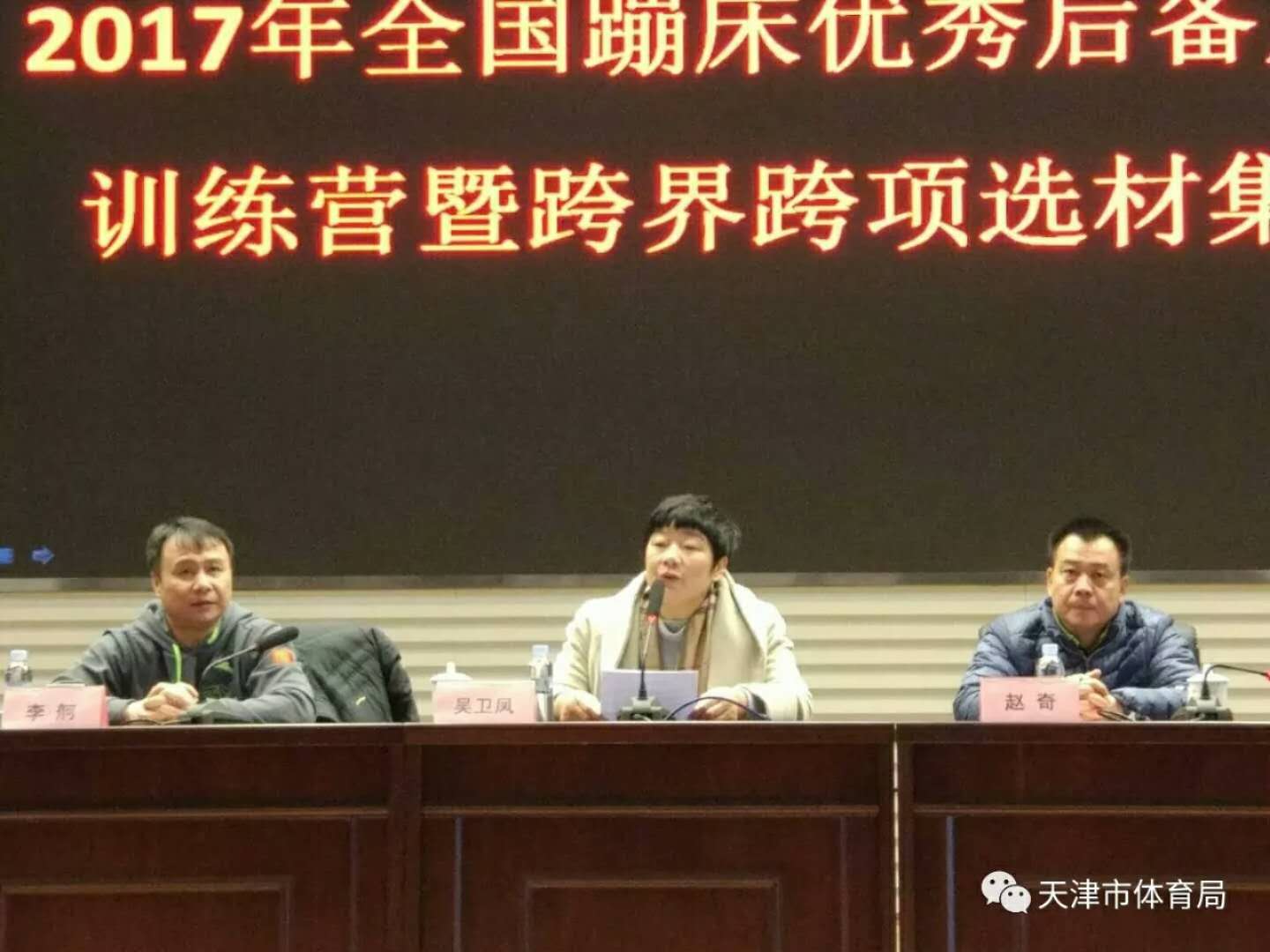 11月24日上午🤽🏽,2017年全国蹦床优秀后备人才训练营暨跨界跨项选材在团泊体育中心举行开营仪式↖️。天津市体育局副巡视员吴卫凤,国家体育总局体操运动管理中心蹦床部部长李舸,天津市体操运动管理中心主任赵奇、副主任窦淑云、苏裕出席了开营仪式🔈。
