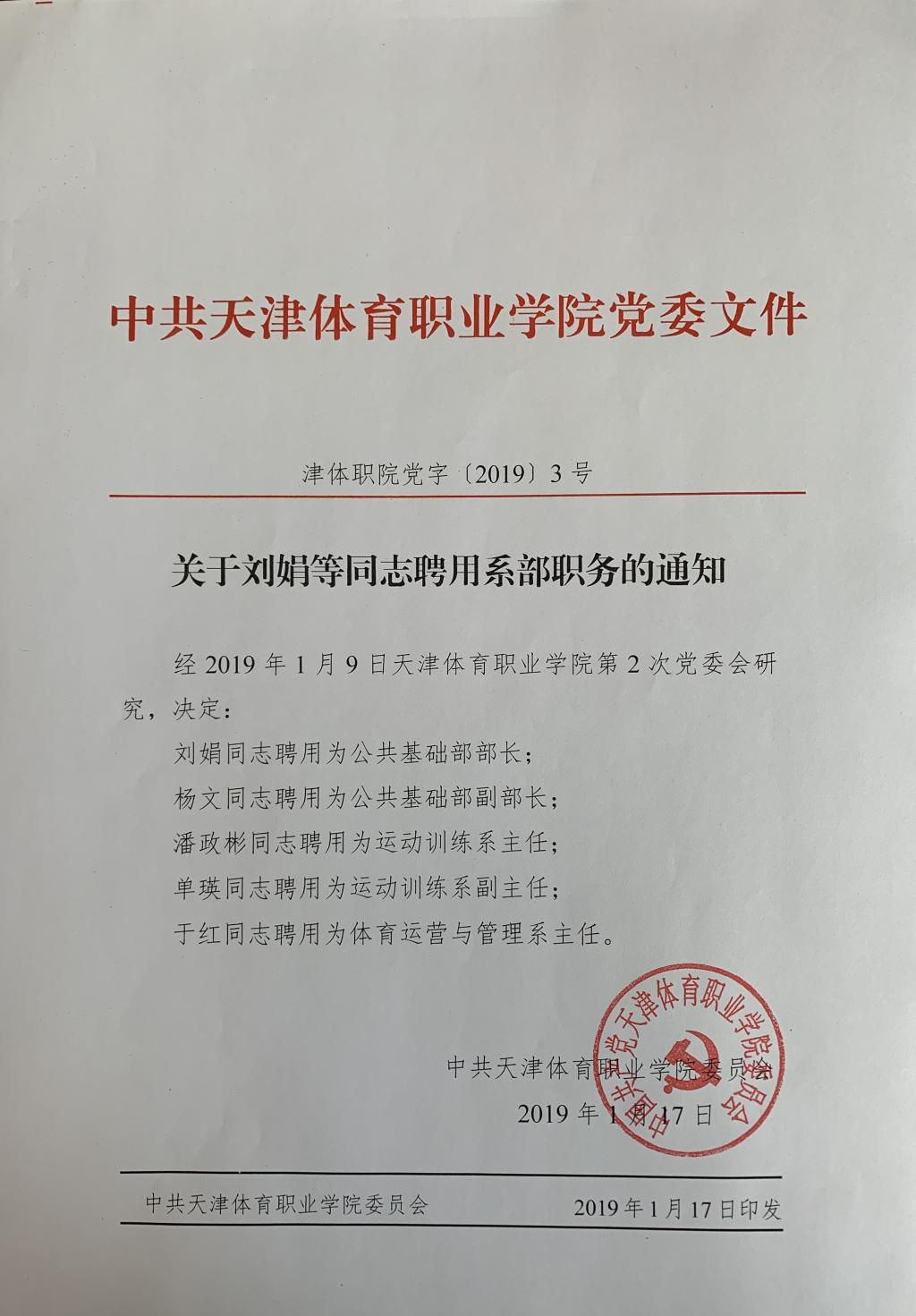 关于刘娟等同志聘用系部职务的通知